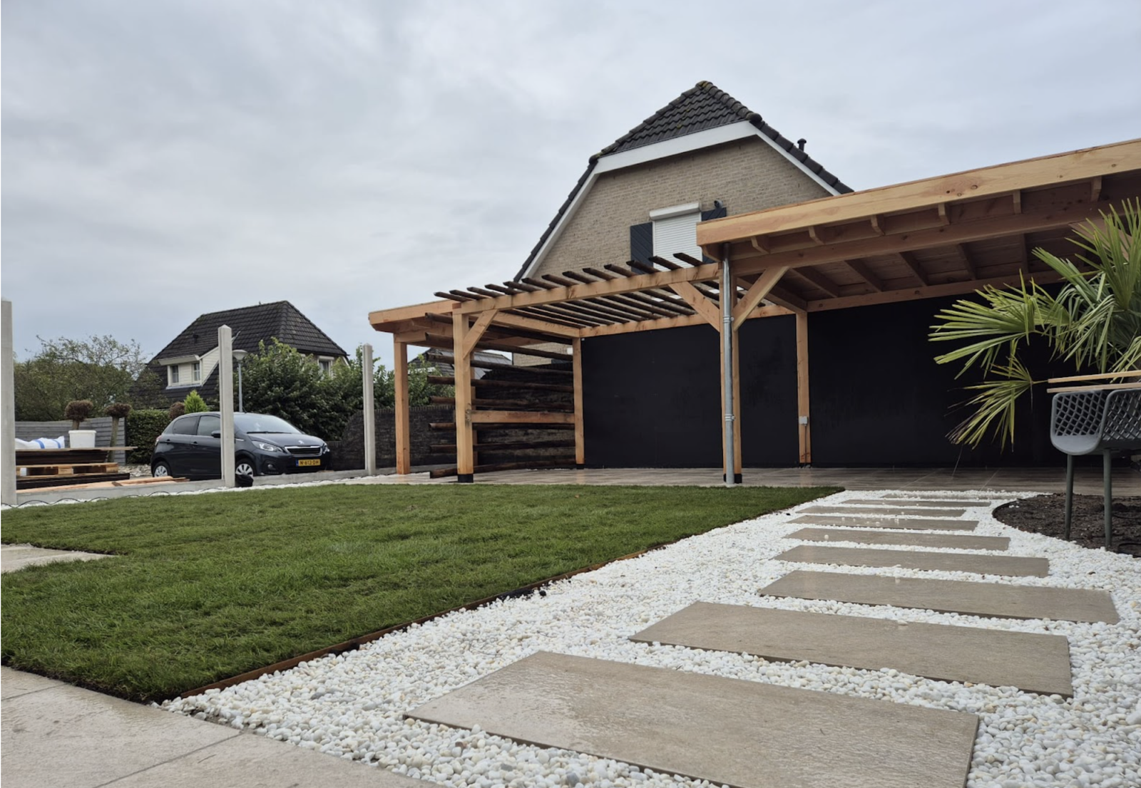 Overkapping 6×3 m + Schuur/Tuinhuisje 3×3 m